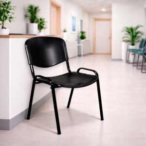 Silla apilable fija brazo alto tapizado en ecocuero color negro