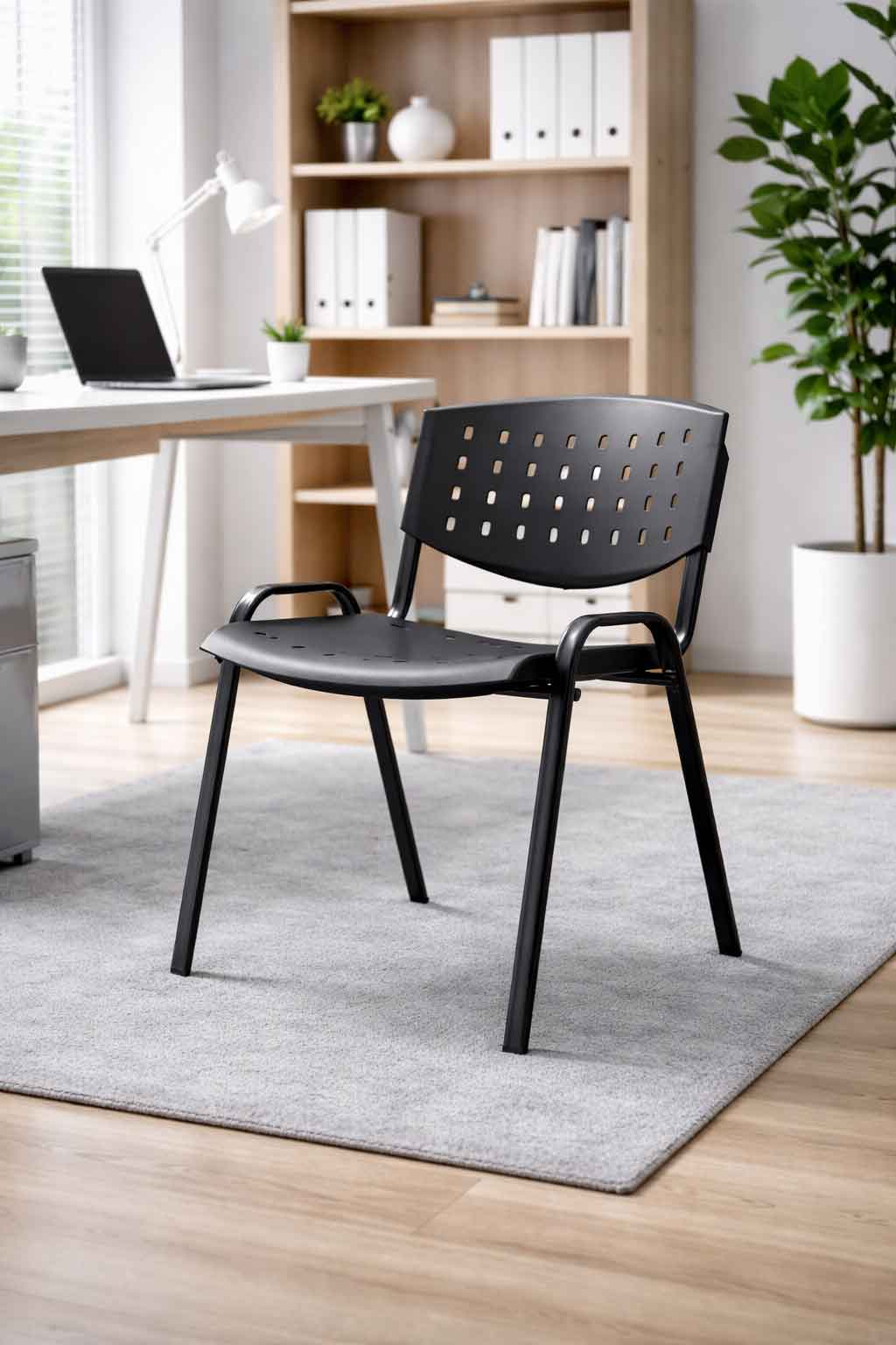 Sé el primero en valorar “Silla apilable fija plástica de color negro calada” Cancelar la respuesta